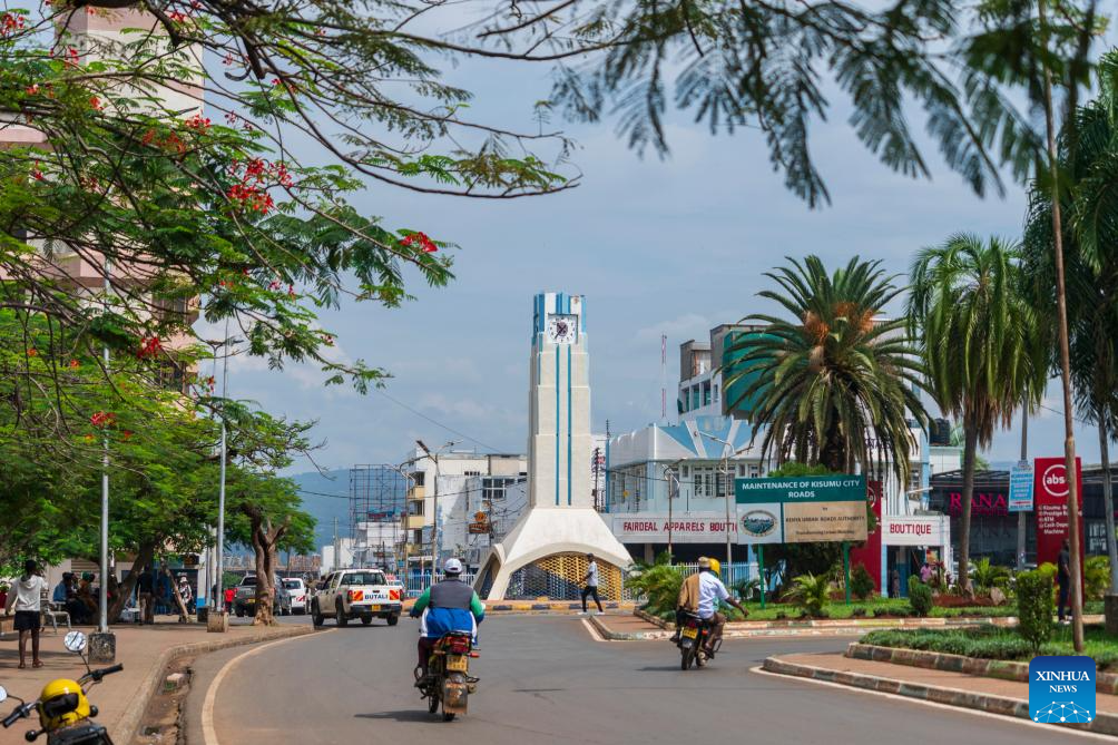 This photo taken on Feb. 28, 2026 shows a street view of Kisumu, Kenya. Kisumu, located on the shores of Lake Victoria in western Kenya, stands as the country's third-largest city. (Xinhua/Xie Jianfei)