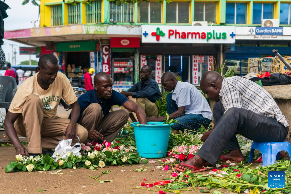 People make flower baskets in Kisumu, Kenya, Feb. 28, 2026. Kisumu, located on the shores of Lake Victoria in western Kenya, stands as the country's third-largest city. (Xinhua/Xie Jianfei)