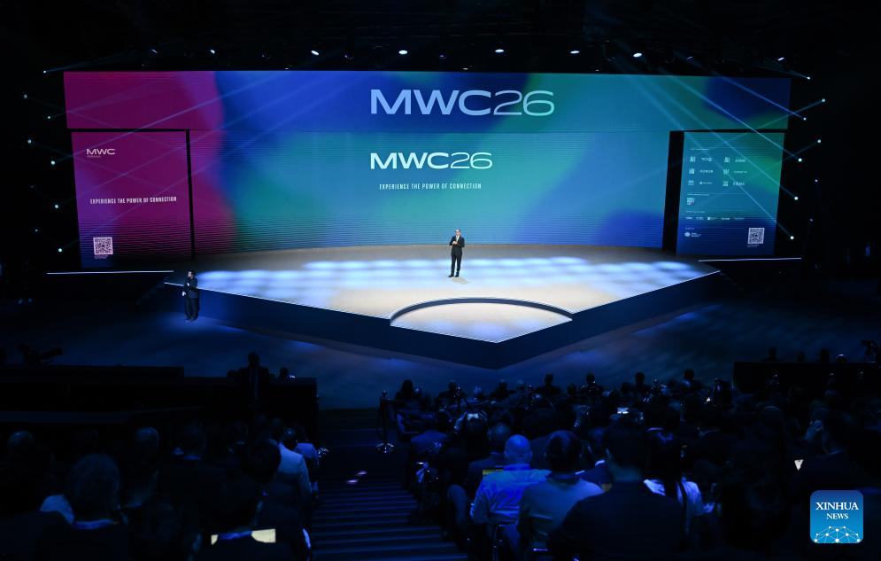 BARCELONA, Spain, March 2 (Xinhua) -- The 2026 Mobile World Congress (MWC) opened on Monday in Barcelona, Spain, under the theme "The IQ Era," with a focus on intelligent infrastructure, AI connectivity and integration, enterprise-level AI applications, AI ecosystem collaboration, inclusive technology and innovation-driven transformation.