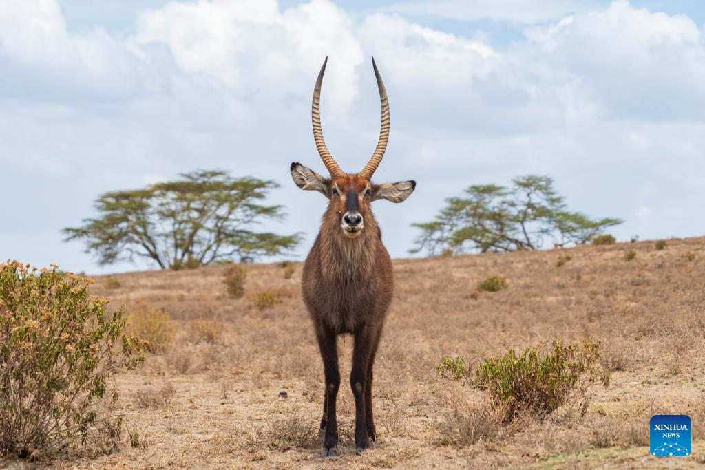 This photo taken on Feb. 1, 2026 shows a waterbuck on the Crescent Island in Lake Naivasha in Nakuru County, Kenya.