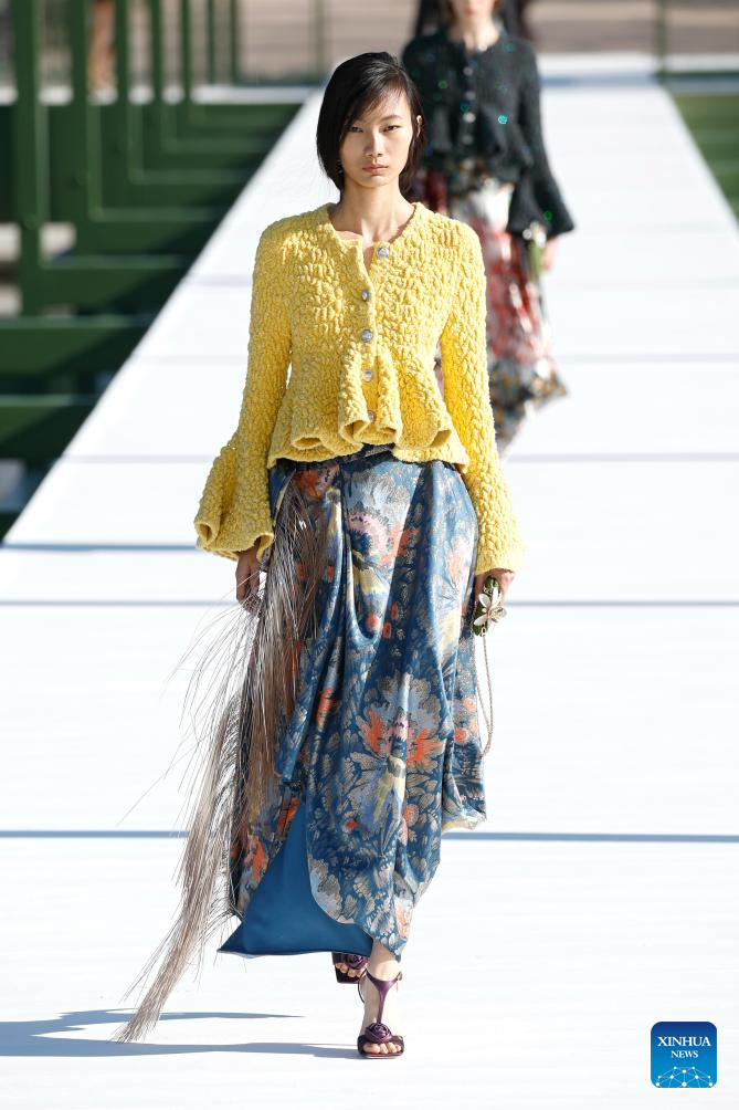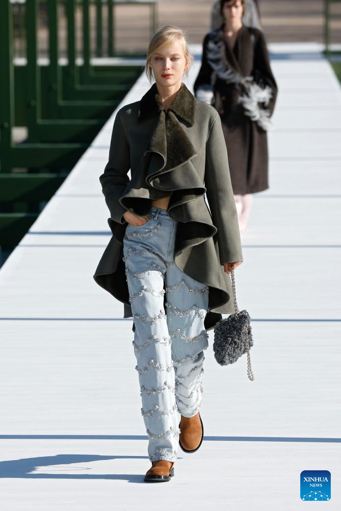 A model presents a creation from the ready-to-wear Fall/Winter 2026-2027 collections by Christian Dior during the Paris Fashion Week, in Paris, France, on March 3, 2026. (MeetEurope/Handout via Xinhua)