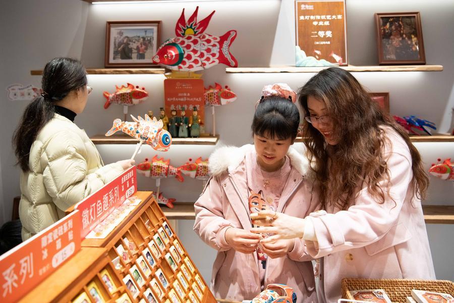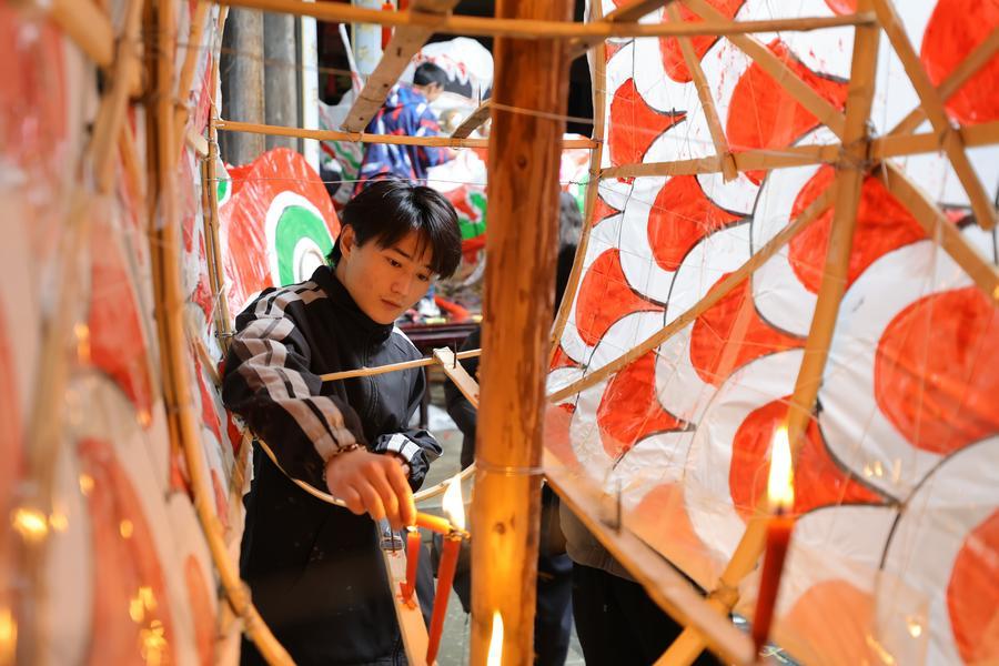 SHEXIAN, March 4 (Xinhua) -- Local villagers in Shexian County, east China's Anhui Province, have the tradition of making fish-shaped lanterns, an intangible cultural heritage, on festival days to pray for harvest and good fortune.