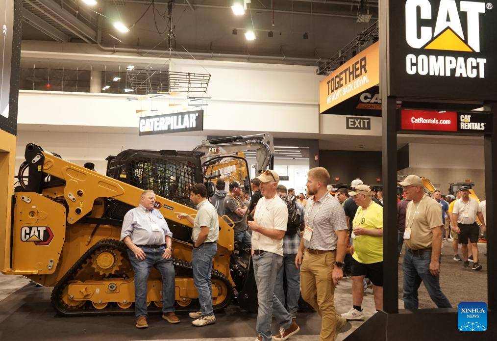 People visit the Caterpillar booth at the 2026 CONEXPO-CON/AGG in Las Vegas, the United States, on March 4, 2026. Global construction equipment manufacturers are gathering in Las Vegas from Tuesday to Saturday for the 2026 CONEXPO-CON/AGG, showcasing a broad shift toward artificial intelligence (AI) and autonomous operations. (Photo by Zeng Hui/Xinhua)