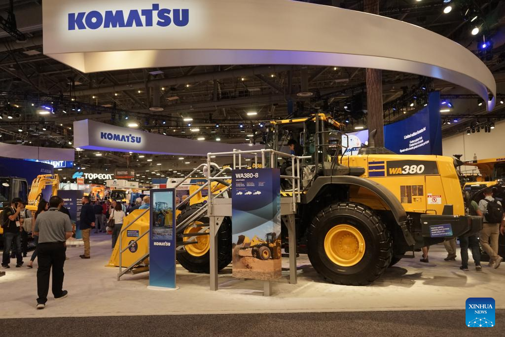 People visit the Komatsu booth at the 2026 CONEXPO-CON/AGG in Las Vegas, the United States, on March 4, 2026. Global construction equipment manufacturers are gathering in Las Vegas from Tuesday to Saturday for the 2026 CONEXPO-CON/AGG, showcasing a broad shift toward artificial intelligence (AI) and autonomous operations. (Photo by Zeng Hui/Xinhua)