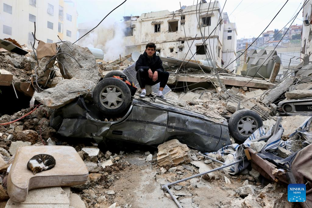 Buildings destroyed by Israeli airstrike in southern Lebanon-Xinhua