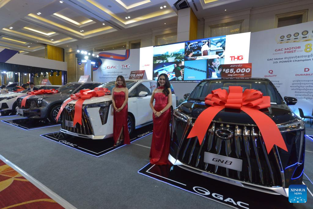 GAC cars are on display at an auto show in Phnom Penh, Cambodia, on March 6, 2026. A number of Chinese auto brands such as BYD, Forthing, Changan, GAC and Jetour were on display at an auto show in the capital of Cambodia on Friday, attracting crowds of visitors. (Photo by Phearum/Xinhua)