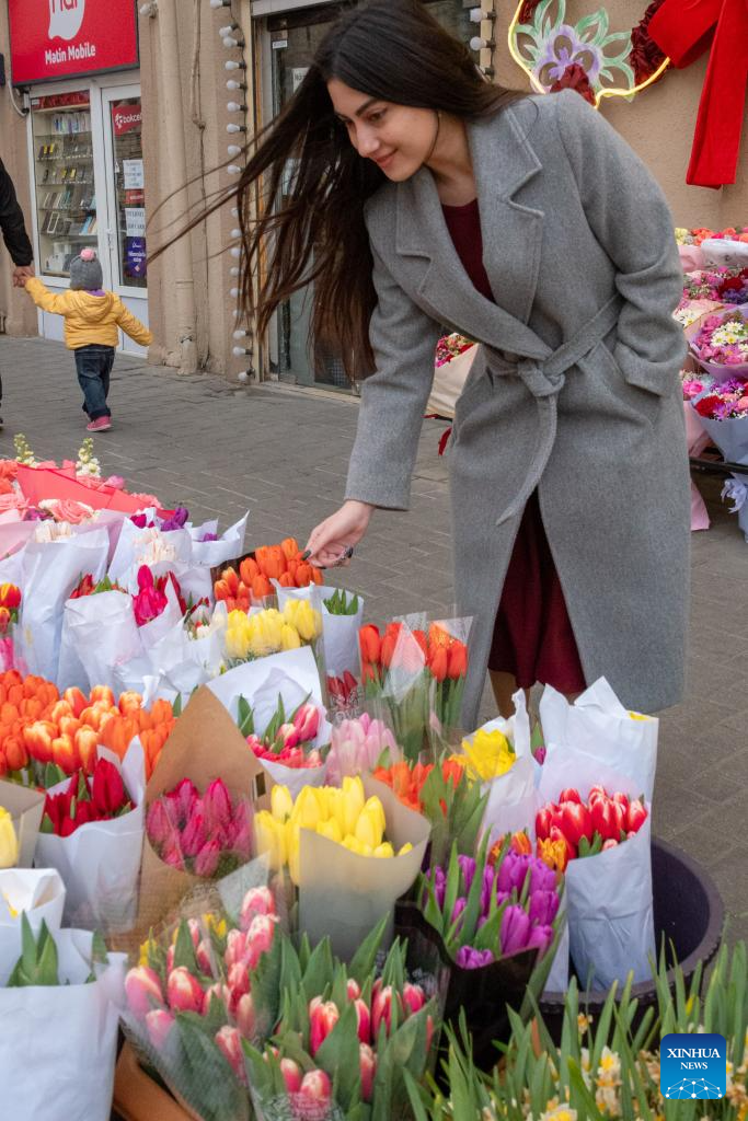 A woman shops for flowers in Baku, Azerbaijan, March 7, 2026. Sunday marks International Women's Day. (Xinhua/Chen Junfeng)