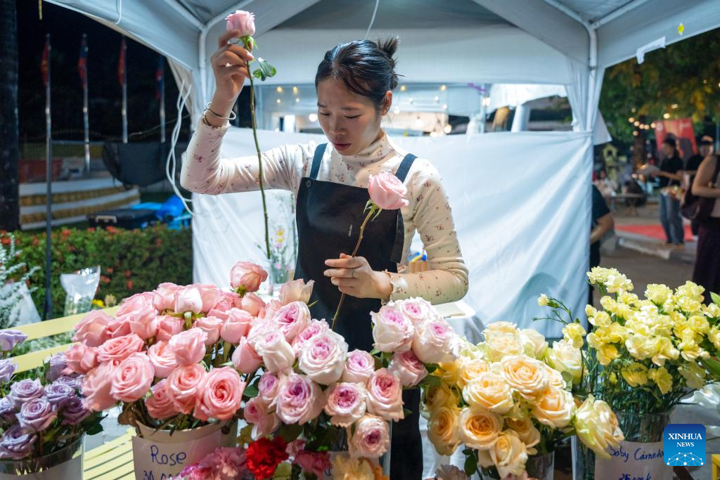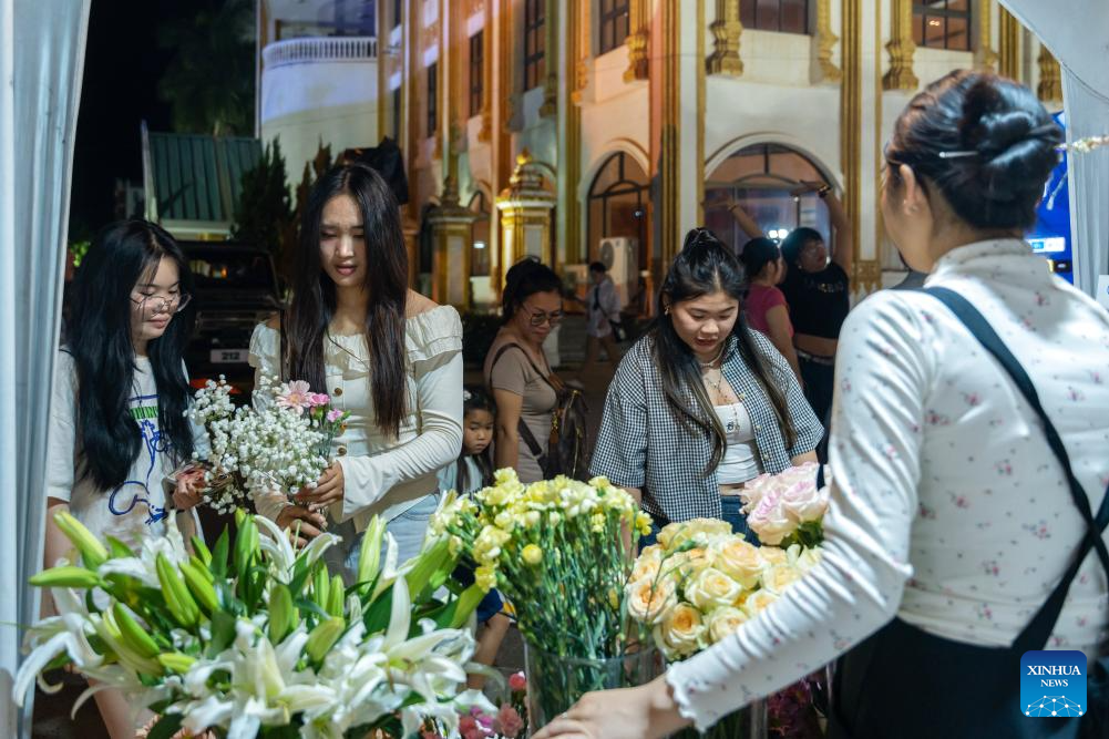 People shop for flowers at a market in Vientiane, Laos, March 7, 2026. Sunday marks International Women's Day. (Photo by Kaikeo Saiyasane/Xinhua)