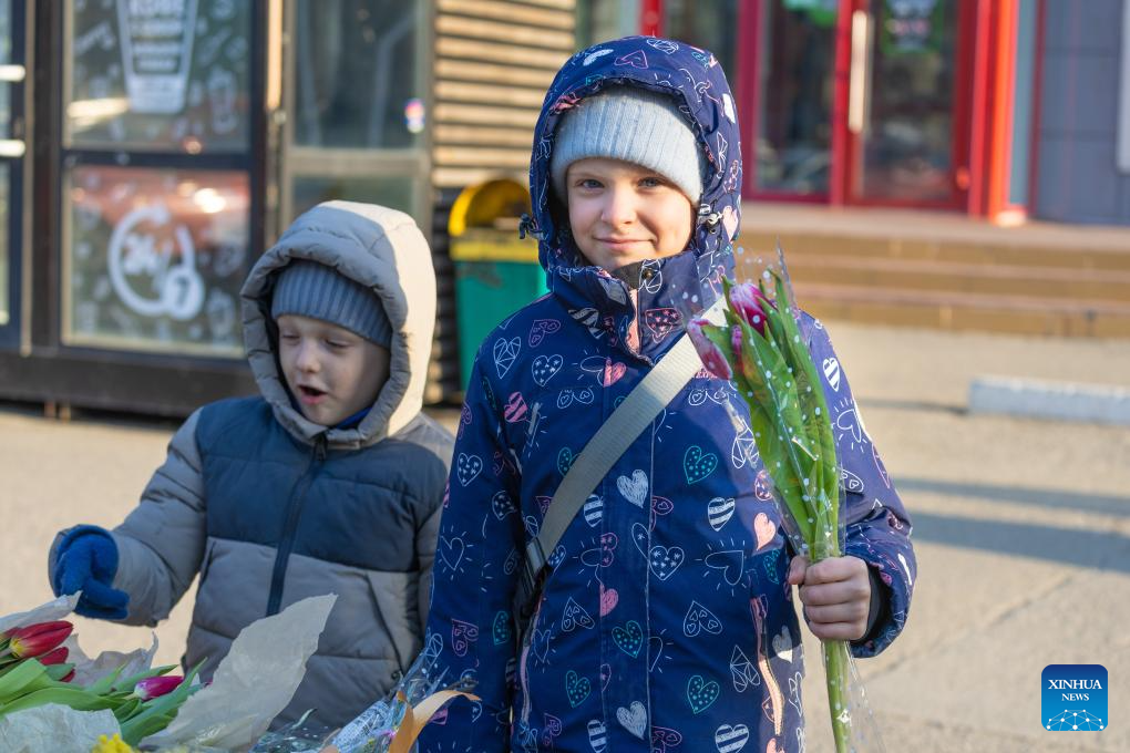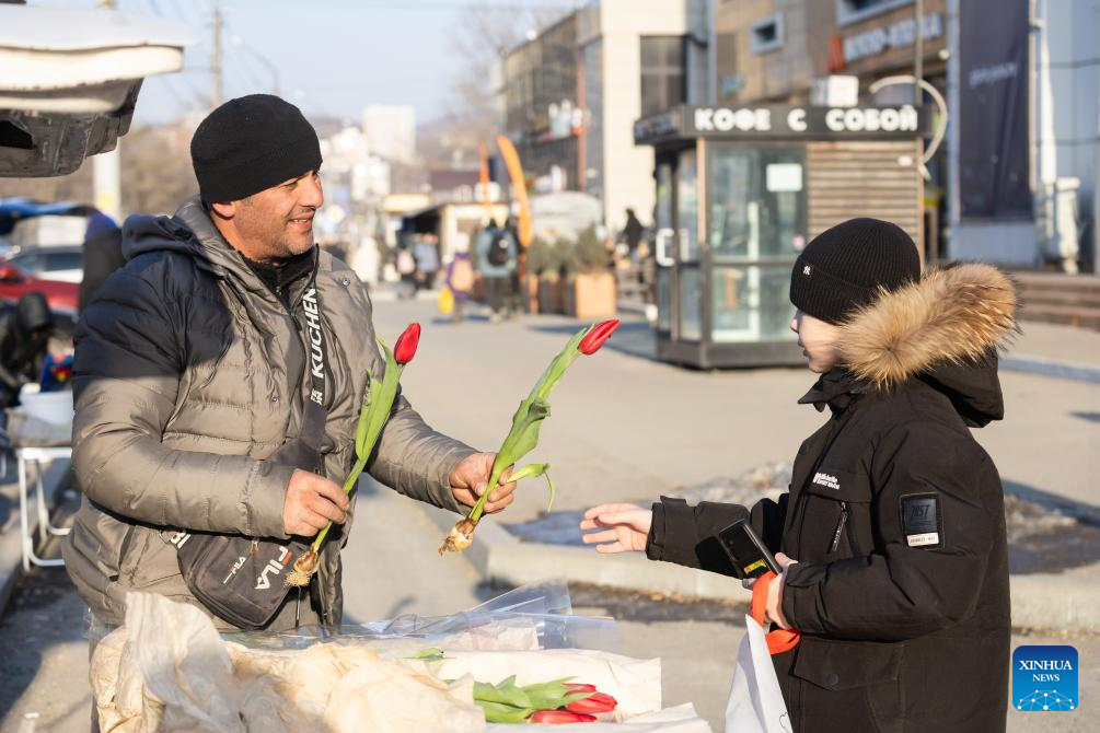 A boy shops for flowers at a stall in Vladivostok, Russia, March 7, 2026. Sunday marks International Women's Day. (Photo by Andrey Matveenko/Xinhua)