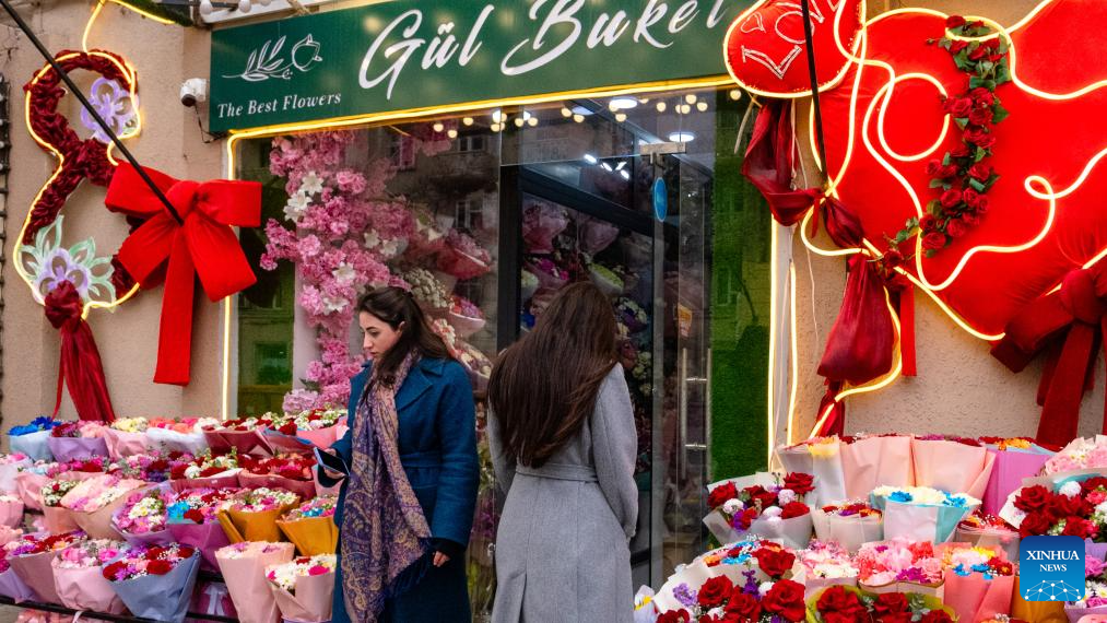 People buy flowers at a shop in Baku, Azerbaijan, March 7, 2026. Sunday marks International Women's Day. (Xinhua/Chen Junfeng)