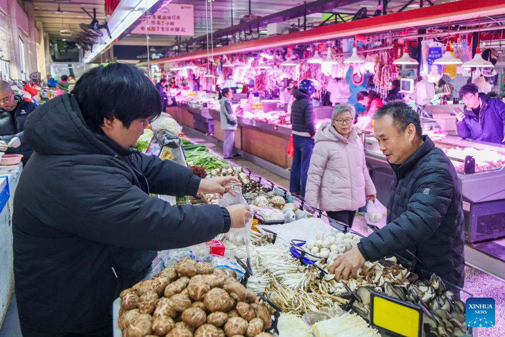 A customer buys mushrooms at a market in Nanjing, east China's Jiangsu Province, on March 9, 2026. China's consumer price index (CPI), a main gauge of inflation, rose 1.3 percent year on year last month, driven by the effects of the Spring Festival holiday, official data showed on Monday.