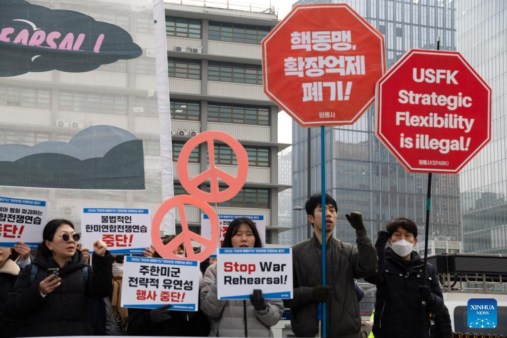 SEOUL, March 9 (Xinhua) -- South Korea and the United States on Monday kicked off their annual Freedom Shield (FS) joint military exercises, drawing protests from civic groups in Seoul who warned the drills could heighten regional tensions and undermine peace on the Korean Peninsula.