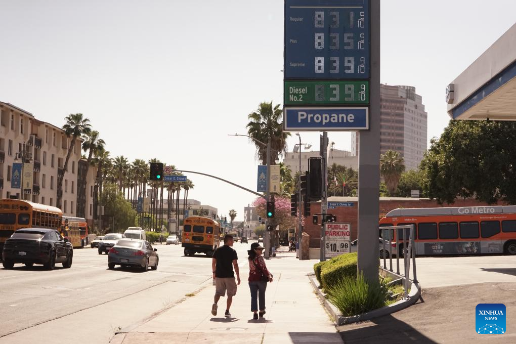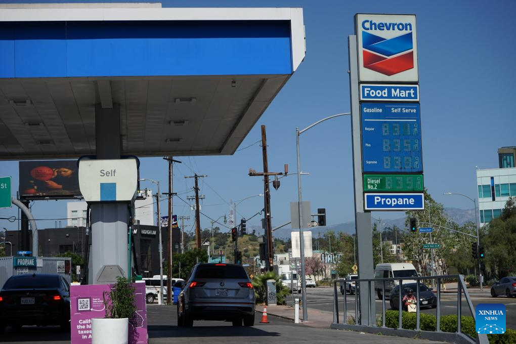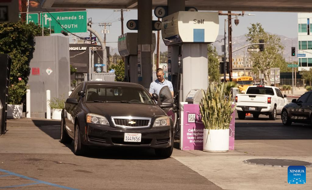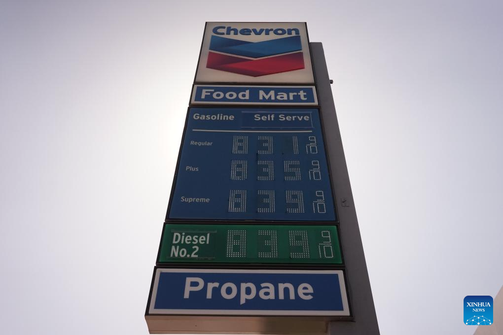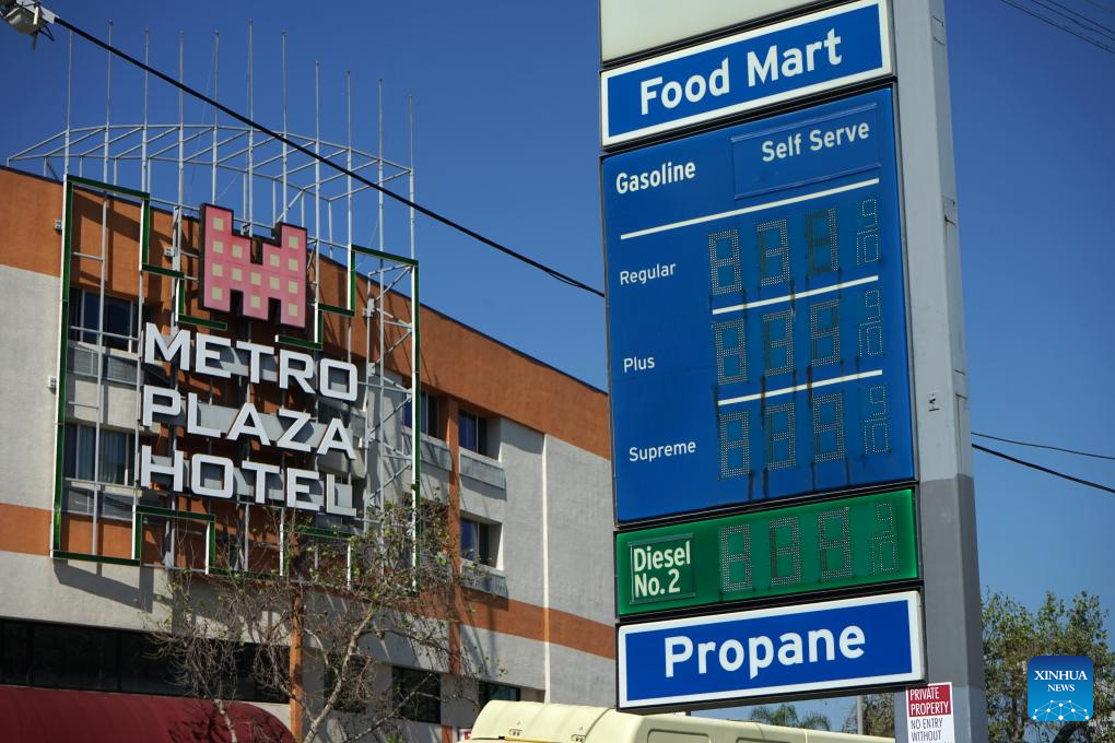 LOS ANGELES, March 9 (Xinhua) -- When drivers pulled into a Chevron gas station in downtown Los Angeles on Monday, they were stunned to see the price of gasoline on the pump -- 8.21 U.S. dollars for a single gallon.