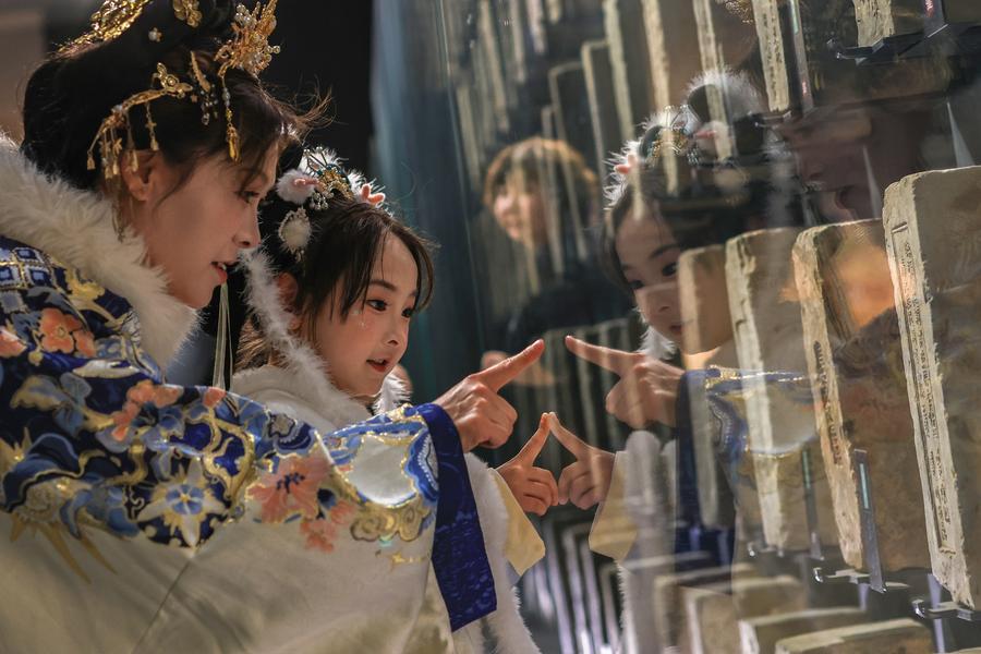 An aerial drone photo shows people watching a "village gala" in Taipan Village of Taijiang County, southwest China's Guizhou Province, Feb. 3, 2026. (Xinhua/Yang Wenbin)A boy is pictured at a reading room at Sanshui grocery market in Hexi District of Tianjin, north China, Nov. 25, 2025. (Xinhua/Zhao Zishuo)A girl and her parent visit the Nanjing City Wall Museum in Nanjing, east China's Jiangsu Province, Feb. 14, 2026. (Photo by Xin Yi/Xinhua)People take photos of the newly-unveiled UNESCO World Heritage sign at the Bell Tower, an ancient landmark on the Beijing Central Axis, in Beijing, capital of China, July 27, 2025. (Xinhua/Chen Zhonghao)A staff member conducts digital scanning of a Buddhist statue at the Longmen Grottoes in Luoyang, central China's Henan Province, April 9, 2025. (Xinhua/Li Jianan)