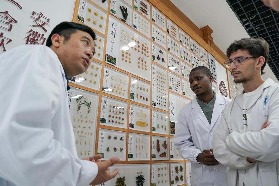Visitors walk past posters during the eighth China International Import Expo (CIIE) in east China's Shanghai, Nov. 8, 2025. (Xinhua/Liu Ying)UN Tourism Secretary-General Zurab Pololikashvili addresses the opening ceremony of the third Liangzhu Forum in Hangzhou, east China's Zhejiang Province, Oct. 18, 2025. (Xinhua/Huang Zongzhi)Algerian student Kerbouche Abdeldjalil (R) and Zimbabwean student Juru Richmore (C) learn about Chinese herbal medicines under the guidance of lecturer Pan Yinxing at Anhui University of Chinese Medicine in Hefei, east China's Anhui Province, Oct. 16, 2025. (Xinhua/Du Yu)This photo taken in April 2025 shows a tour guide with his tourists tasting Shanghai-style scallion oil noodles at a restaurant in Shanghai, east China. (Xinhua)An Iranian student (L) tastes local specialties with her parents at a gift shop on Nanjing Road in east China's Shanghai on July 17, 2025. (Xinhua/Chen Haoming)This photo taken on Sept. 22, 2025 shows Clarisse Le Guernic, a French woman working as a local tour guide, introducing the "citywalk" routes she explored at a studio in Shanghai, east China. (Xinhua/Chen Haoming)