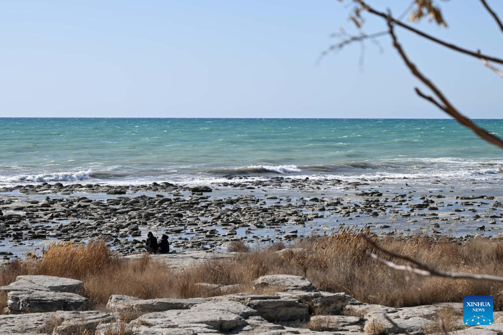 This photo taken on March 11, 2026 shows a coast scenery of the Caspian Sea in Aktau, Kazakhstan. (Xinhua/Li Renzi)