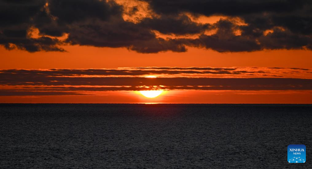 This photo taken on March 10, 2026 shows a view of the Caspian Sea at sunset in Aktau, Kazakhstan. (Xinhua/Li Renzi)