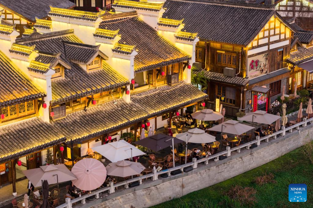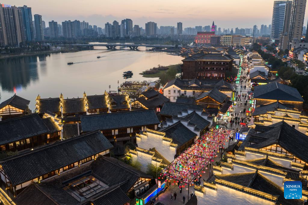The once heavily polluted Chuanzi River, which meanders through the city proper of Changde, has now become a clean and attractive scenic spot along its banks. Boasting a long history, the riverside Changde Hejie old street has been transformed into a historical and cultural block. (Xinhua/Chen Sihan)