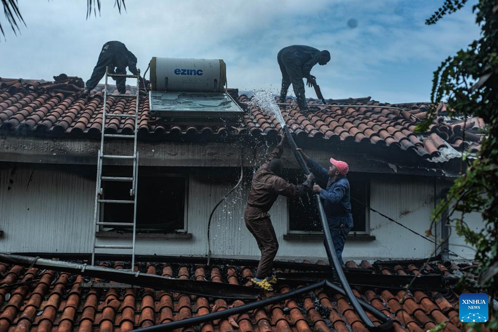 Rescue workers check damages after a drone attack in Goma, eastern Democratic Republic of the Congo (DRC), on March 11, 2026. Explosions were heard on Wednesday morning. The March 23 Movement (M23) rebel group attributed a drone strike to the Congolese government's military forces. According to a provisional toll released by M23, three people were killed, including a French national working for the United Nations Children's Fund. (Str/Xinhua)