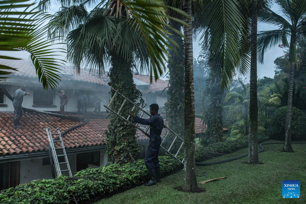 Rescue workers put out fire after a drone attack in Goma, eastern Democratic Republic of the Congo (DRC), on March 11, 2026. Explosions were heard on Wednesday morning. The March 23 Movement (M23) rebel group attributed a drone strike to the Congolese government's military forces. According to a provisional toll released by M23, three people were killed, including a French national working for the United Nations Children's Fund. (Str/Xinhua)