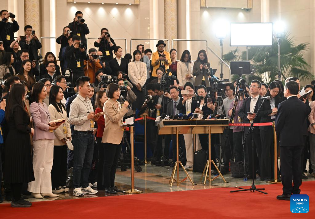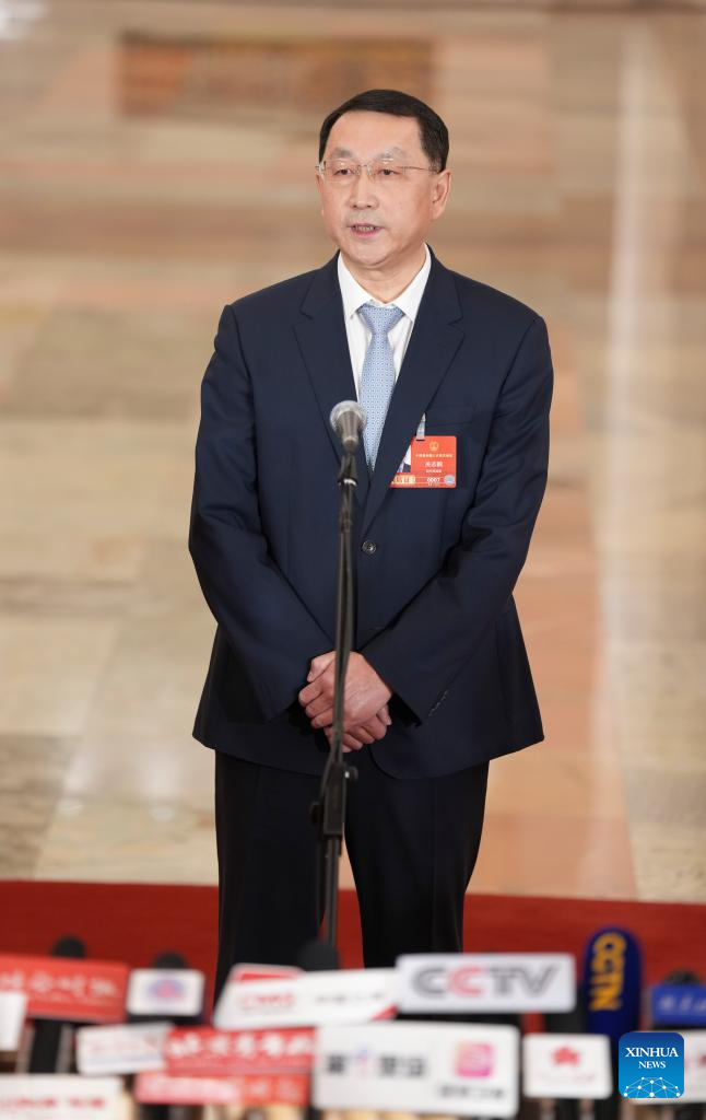 China's Minister of Natural Resources Guan Zhiou gives an interview after the closing meeting of the fourth session of the 14th National People's Congress (NPC) at the Great Hall of the People in Beijing, capital of China, March 12, 2026. (Xinhua/Li Xin)