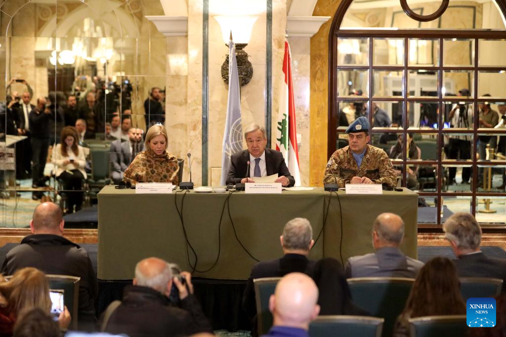 BEIRUT, March 14 (Xinhua) -- UN Secretary-General Antonio Guterres called for an immediate de-escalation between Israel and Lebanon during a press conference in Beirut on Saturday, warning that escalating violence risks devastating large parts of the country.