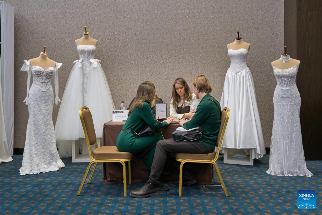 Wedding-related services provided at wedding expo in St. Petersburg, Russia-Xinhua