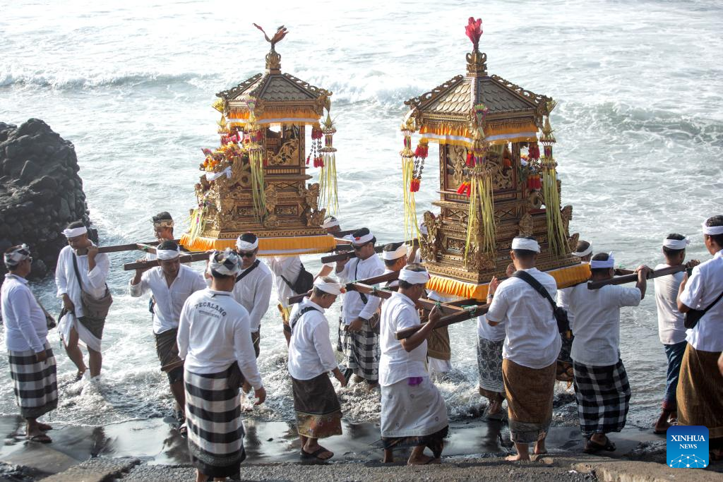 People participate in a Melasti ceremony in Gianyar Regency, Bali, Indonesia, on March 15, 2026. Hindu devotees in Indonesia held the Melasti ceremony before celebrating the Nyepi Day, the Balinese Day of Silence. According to the Balinese calendar, Nyepi Day is a holy day that ushers in the Hindu New Year. (Photo by Lana Prima/Xinhua)