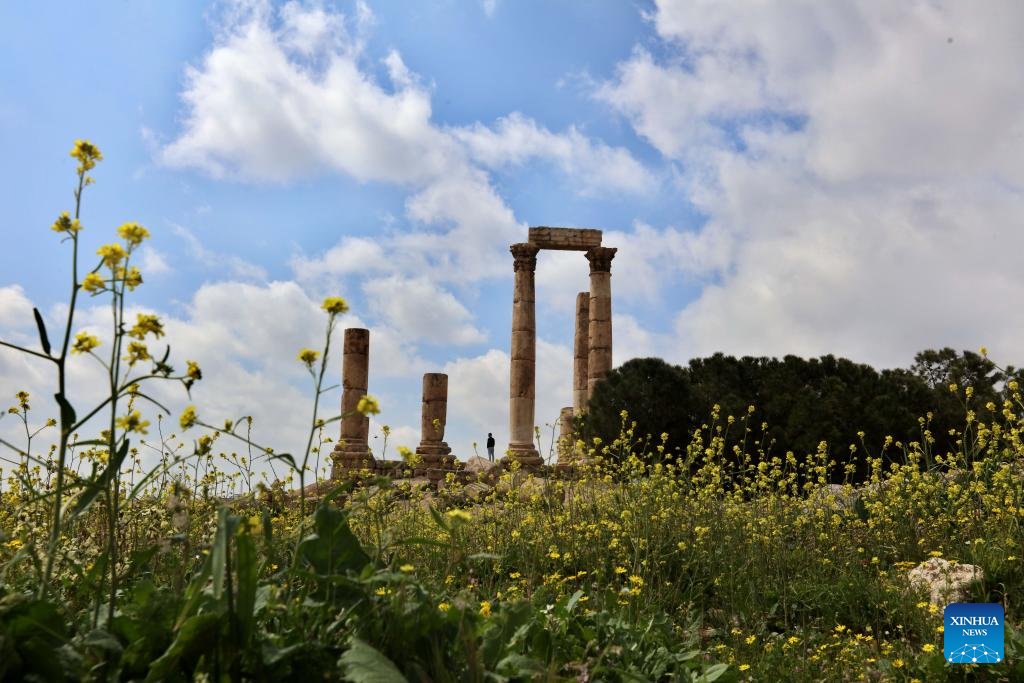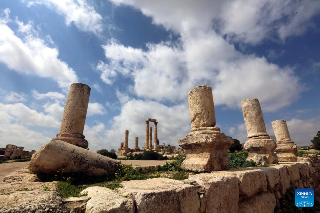 This photo taken on March 16, 2026 shows a view of the archaeological site of Amman Citadel in Amman, Jordan. (Photo by Mohammad Abu Ghosh/Xinhua)