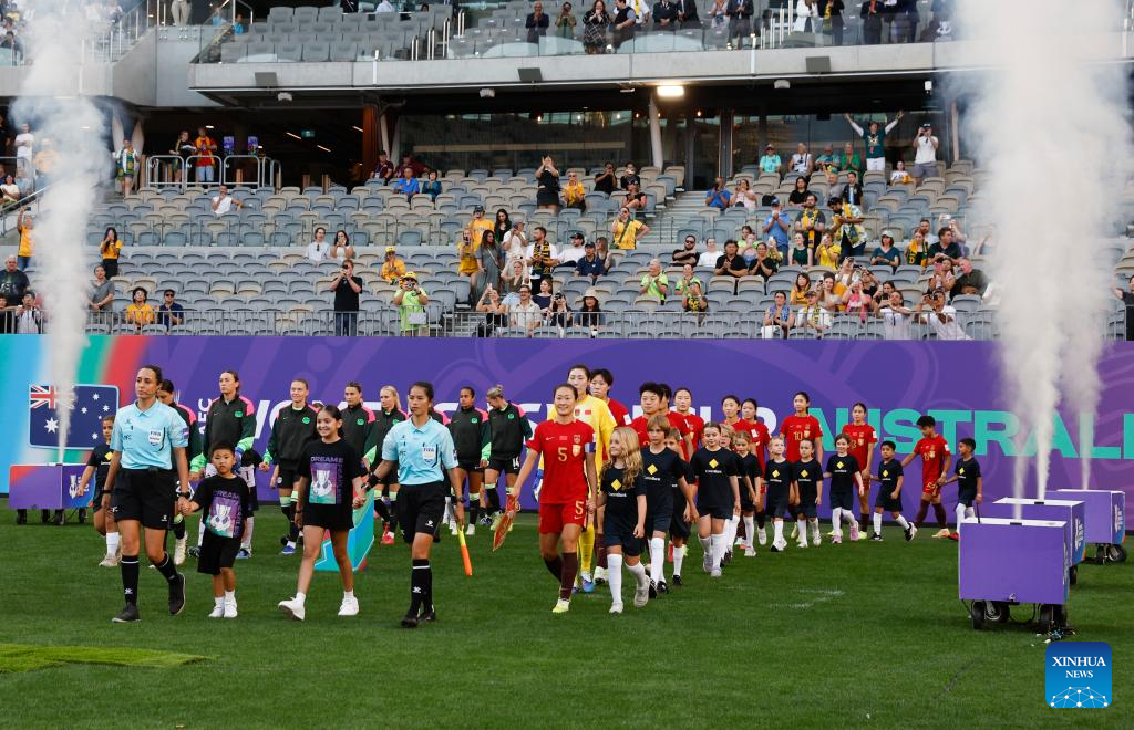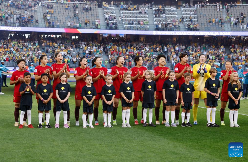 Players of China are seen before the semifinal of Women's Asian Cup between China and Australia at Perth Stadium in Perth, Australia, March 17, 2026. (Xinhua/Ma Ping)