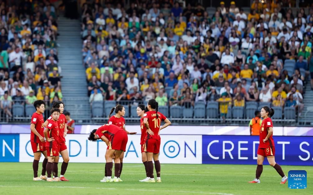 Players of China react during the semifinal of Women's Asian Cup between China and Australia at Perth Stadium in Perth, Australia, March 17, 2026. (Xinhua/Ma Ping)