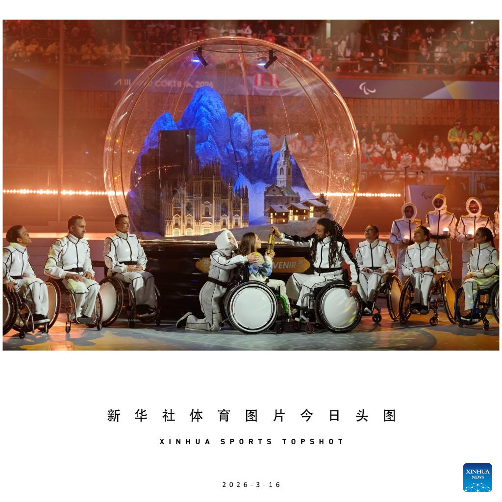 Artists perform during the closing ceremony of Milan-Cortina 2026 Paralympic Winter Games in Cortina D'ampezzo, Italy, March 15, 2026. (Xinhua/Mu Yu)