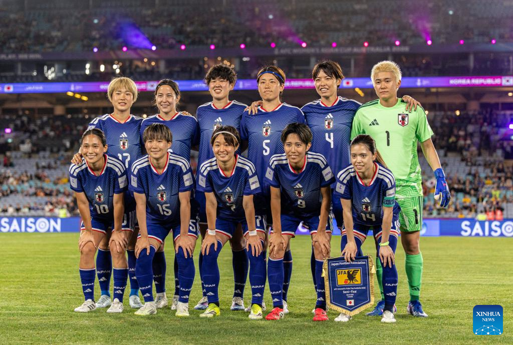 Players of Japan pose before the semifinal of Women's Asian Cup between Japan and South Korea in Sydney, Australia, March 18, 2026. (Photo by Hu Jingchen/Xinhua)