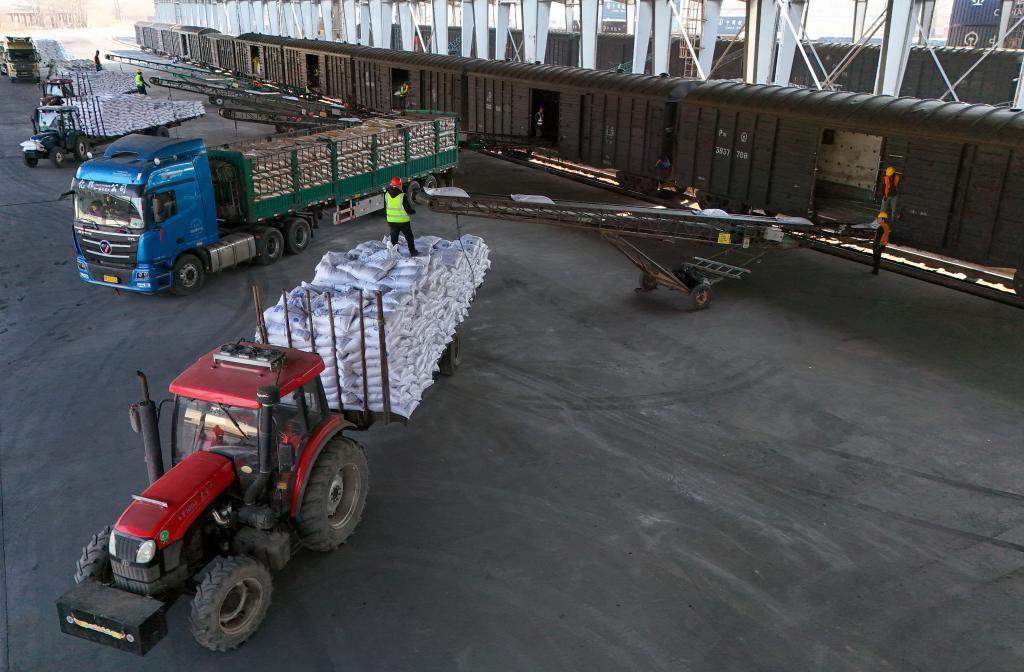 An aerial drone photo taken on March 17, 2026 shows the freight trains loaded with agricultural materials at Harbin South Railway Station in Harbin, northeast China's Heilongjiang Province. (Xinhua/Wang Song)An aerial drone photo taken on March 17, 2026 shows a worker unloading fertilizers at the Suihua business department of Harbin Railway Logistics Center in Suihua, northeast China's Heilongjiang Province. (Xinhua/Wang Song)A drone photo taken on March 17, 2026 shows a worker unloading fertilizers at the Suihua business department of Harbin Railway Logistics Center in Suihua, northeast China's Heilongjiang Province. (Xinhua/Wang Song)A staff member issues dispatch commands to freight trains at the dispatch workshop of Harbin South Railway Station in Harbin, northeast China's Heilongjiang Province, March 17, 2026. (Xinhua/Wang Song)A worker unloads fertilizers at the Suihua business department of Harbin Railway Logistics Center in Suihua, northeast China's Heilongjiang Province, March 17, 2026. (Xinhua/Wang Song)A drone photo taken on March 17, 2026 shows the freight trains loaded with agricultural materials at Harbin South Railway Station in Harbin, northeast China's Heilongjiang Province. (Xinhua/Wang Song)