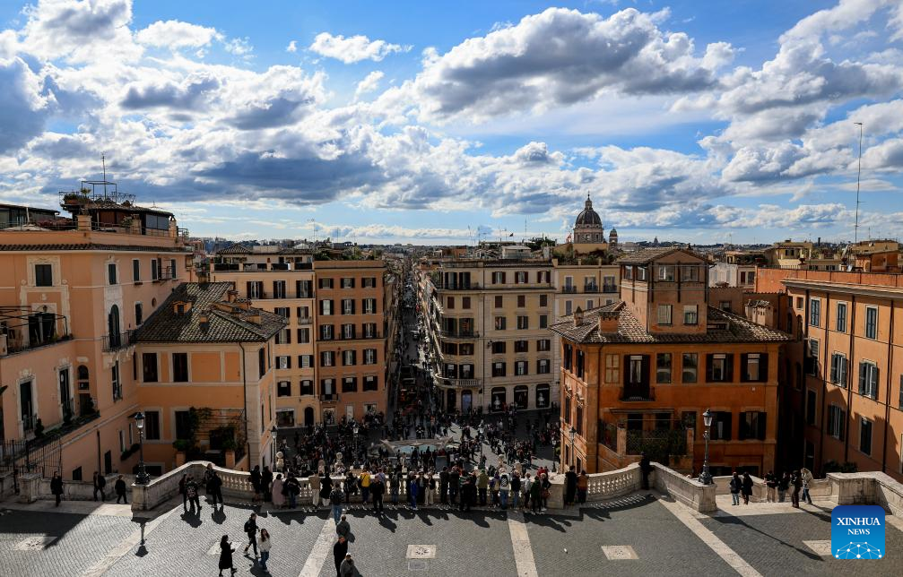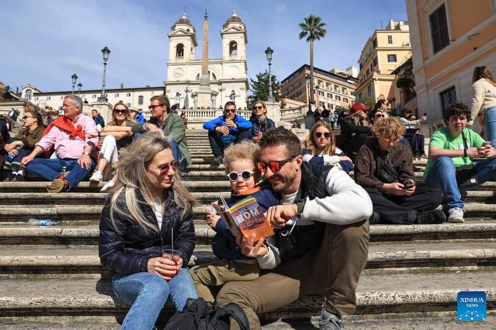People enjoy themselves at Spanish Steps in Rome, Italy, March 18, 2026. (Xinhua/Wang Kaiyan)