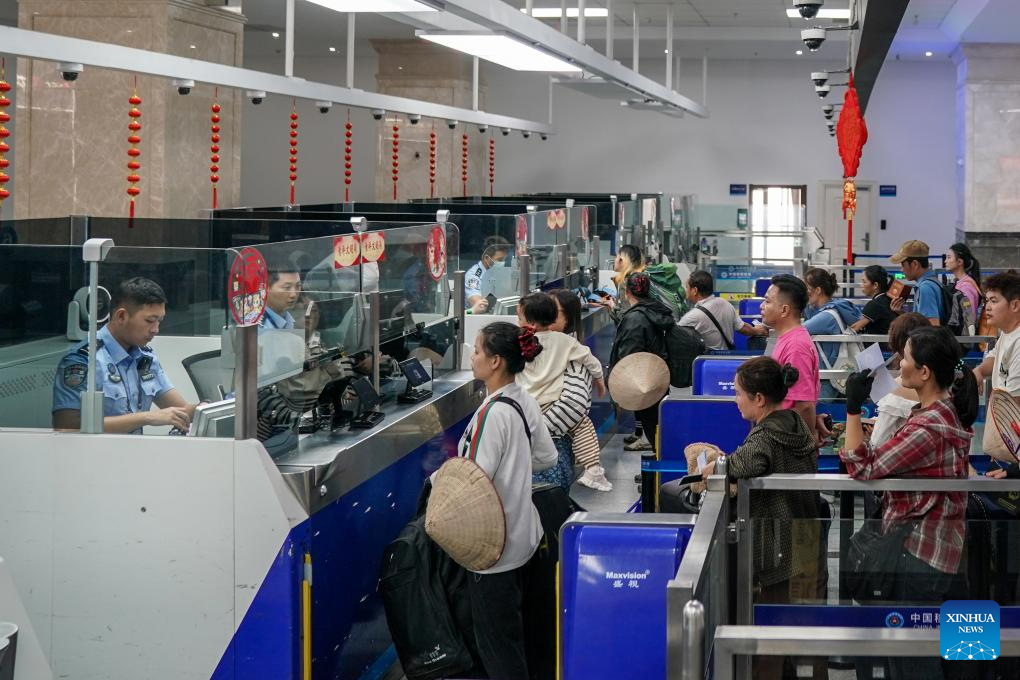 Tourists go through border inspection at Hekou Port in Hekou Yao Autonomous County, southwest China's Yunnan Province, on Feb. 26, 2026. (Xinhua/Peng Yikai)