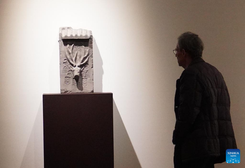A visitor looks at a Chinese art piece at the Sotheby's auction house in New York, the United States, on March 19, 2026. Asia Week New York 2026 opened in New York City on Thursday, showcasing Asian art works from museums, galleries and auction houses. (Xinhua/Zhang Fengguo)