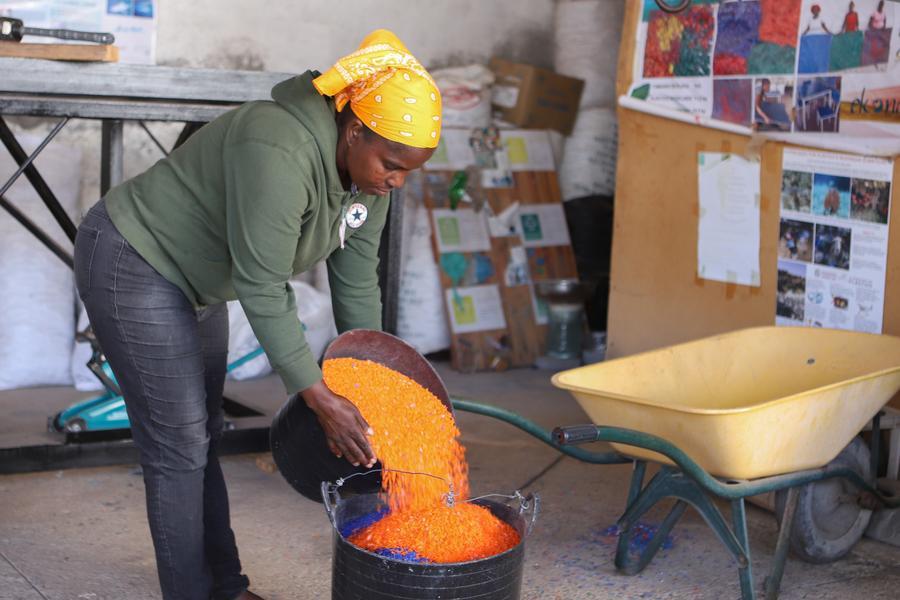 Using discarded plastic and glass collected by residents and partner companies, the project gives waste a second life through practical products for schools and communities.