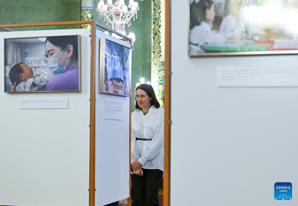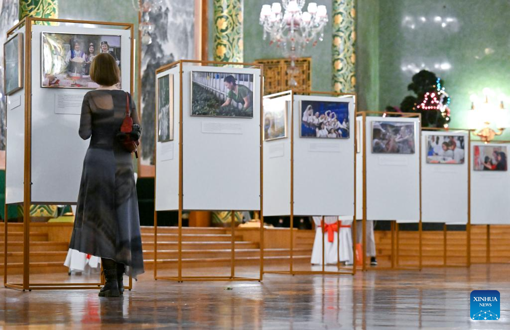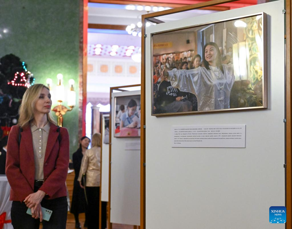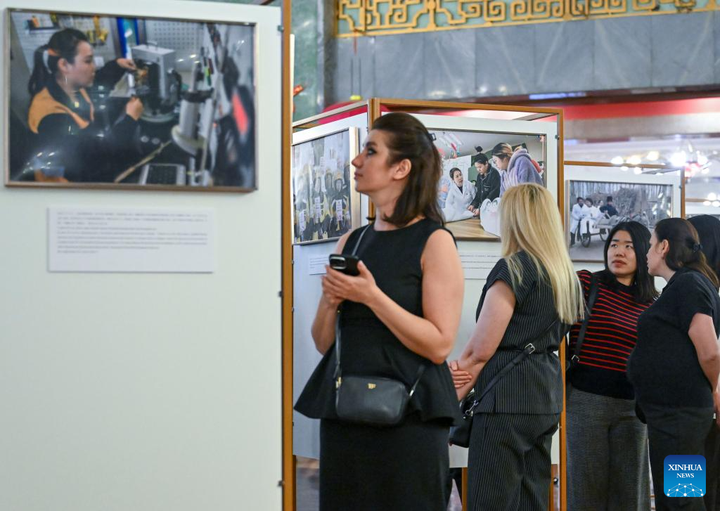The exhibition features about 40 selected photographs showcasing the progress of Chinese women's cause and the outcomes of China-Russia exchanges and cooperation in this field. (Xinhua/Hao Jianwei)
