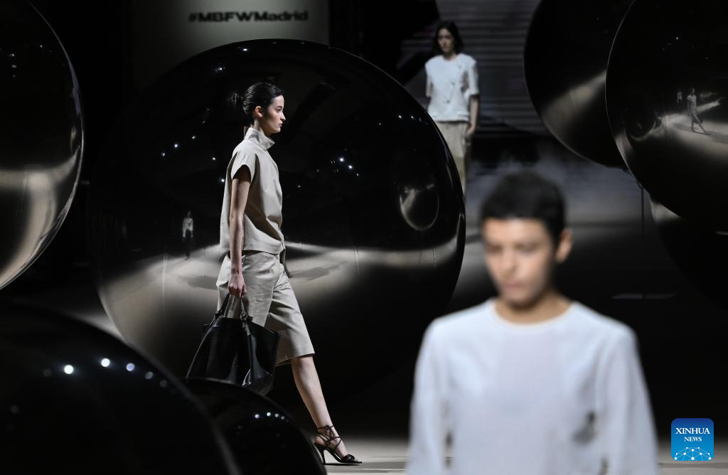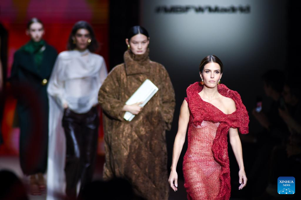 Models present creations of Coosy x Miguel Palacio during the Mercedes-Benz Fashion Week in Madrid, Spain, on March 20, 2026. (Xinhua/Cheng Min)