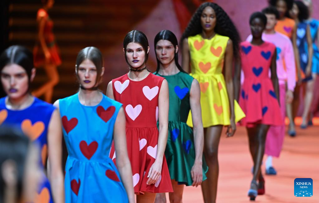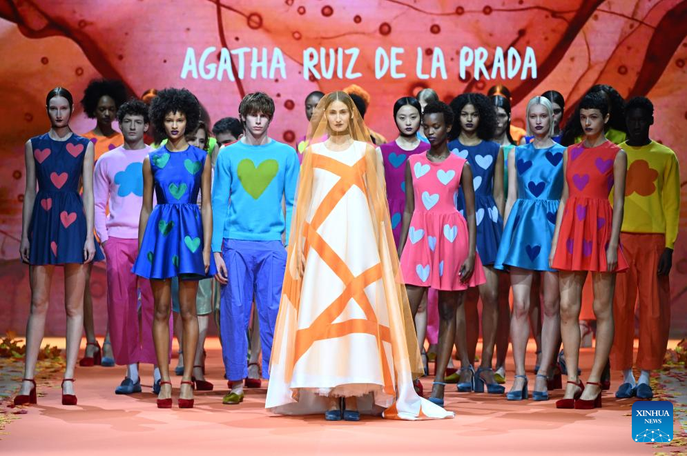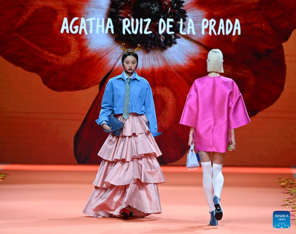 Models present creations of Agatha Ruiz de la Prada during the Mercedes-Benz Fashion Week in Madrid, Spain, on March 20, 2026. (Xinhua/Cheng Min)