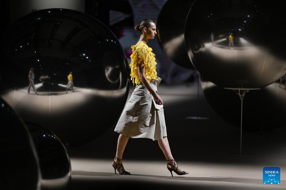 A model presents creations of Agatha Ruiz de la Prada during the Mercedes-Benz Fashion Week in Madrid, Spain, on March 20, 2026. (Xinhua/Cheng Min)