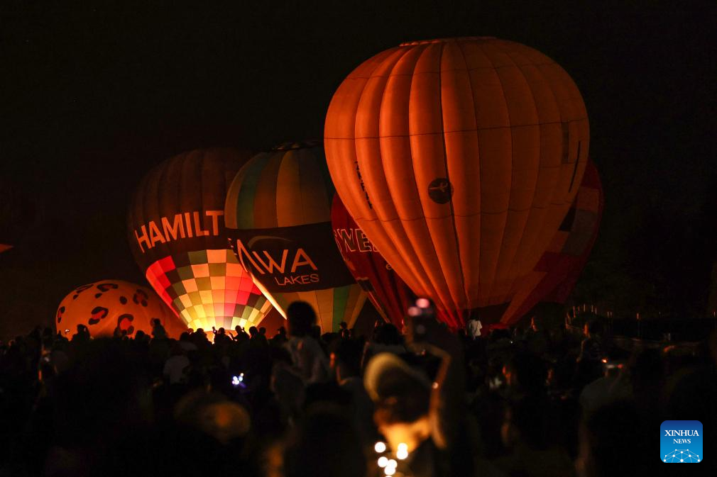 Hot-air balloons are pictured during the Balloons Over Waikato Festival in Hamilton, New Zealand, on March 21, 2026. The festival is held here from March 21 to 28 this year. (Xinhua/Long Lei)