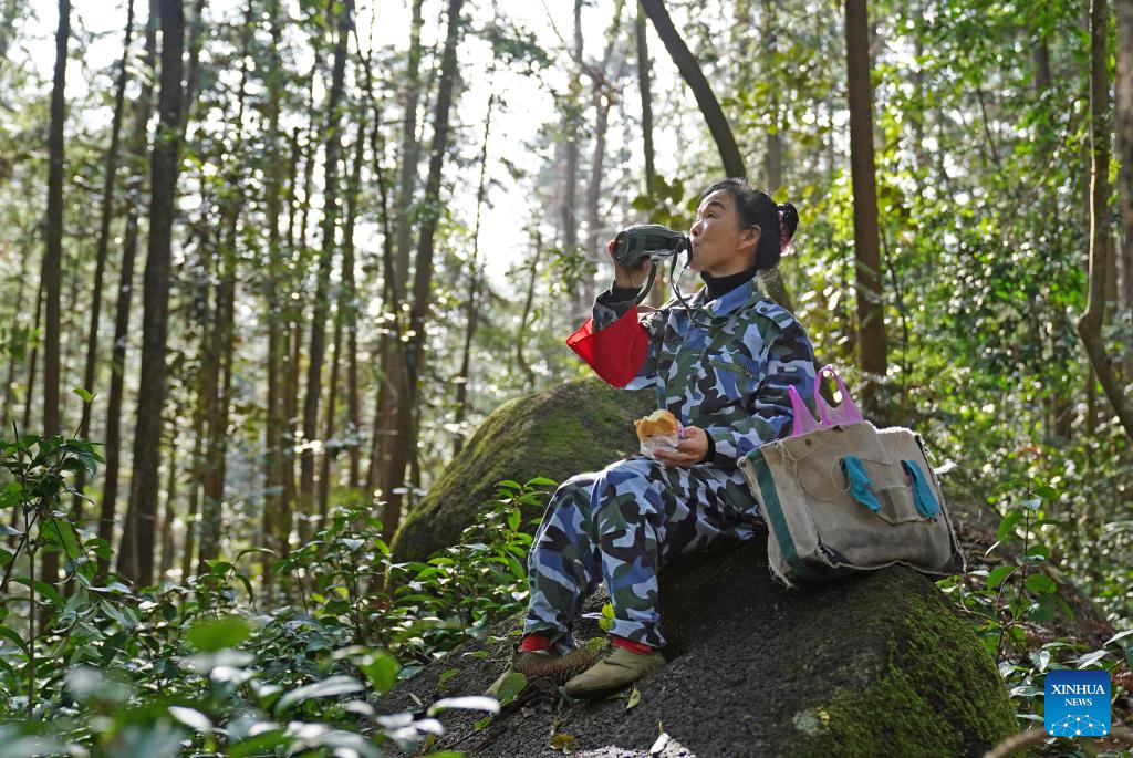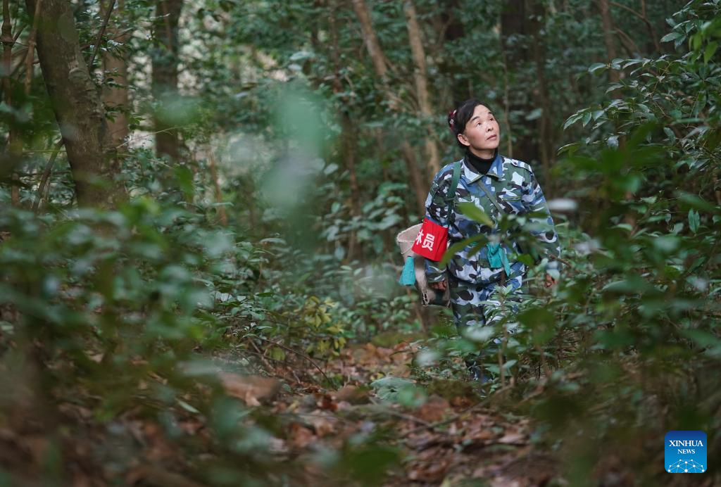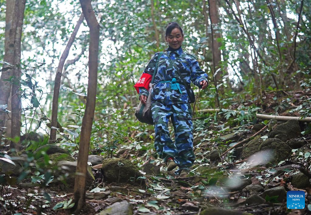Wu Zhonghua, 62 years old, has been responsible for managing and patrolling a forest farm of over 3,600 mu (240 hectares) for 32 years at the Guanshan National Nature Reserve in Yifeng County of east China's Jiangxi Province. Her daily work includes popularizing regulations, removing fire hazards, curbing deforestation, preventing forest pests and also guarding against poaching and illegal collection of wild animals and plants.