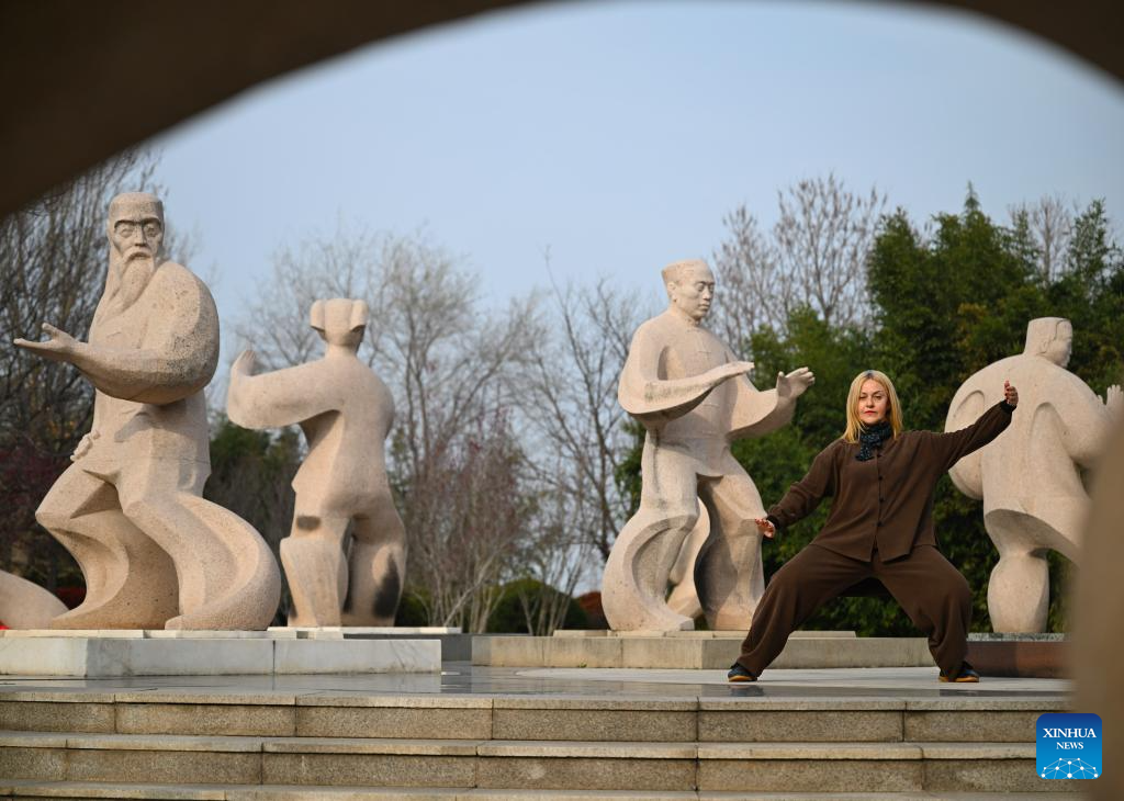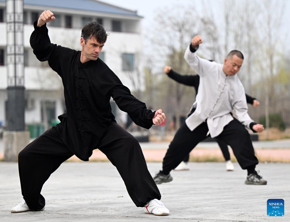A Russian practitioner practices Taijiquan in Chenjiagou Village of Wenxian County, central China's Henan Province, March 19, 2026.