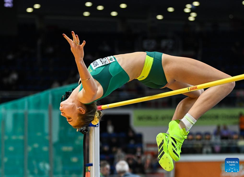 Eleanor Patterson of Australia competes during the women's high jump final at the 2026 World Athletics Indoor Championships in Torun, Poland, March 20, 2026. (Xinhua/Zhang Haofu)