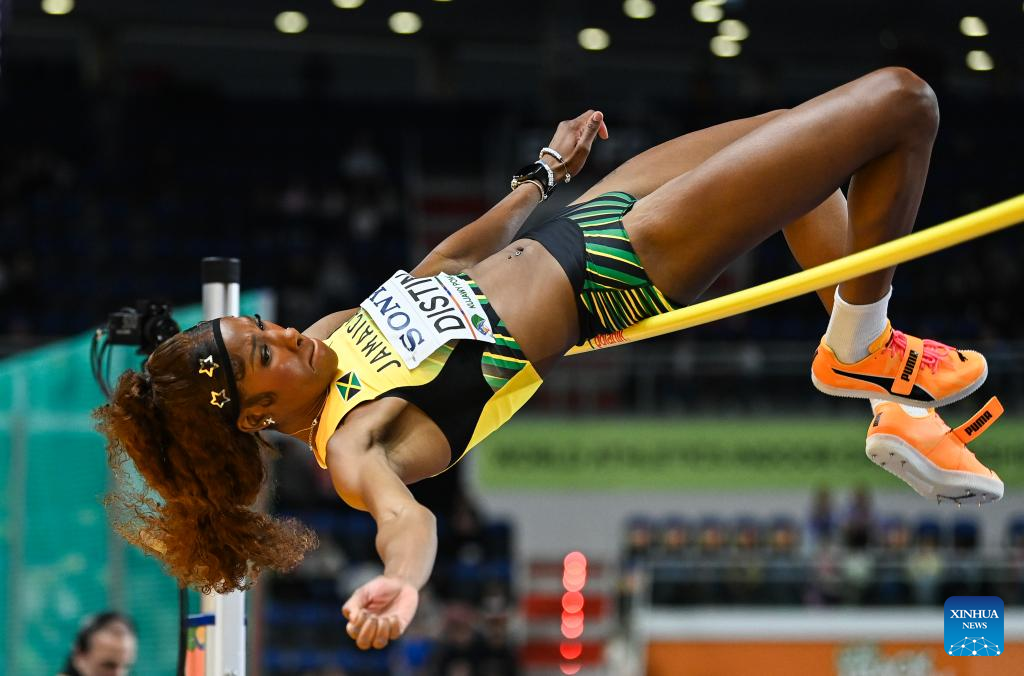 Lamara Distin of Jamaica competes during the women's high jump final at the 2026 World Athletics Indoor Championships in Torun, Poland, March 20, 2026. (Xinhua/Zhang Haofu)