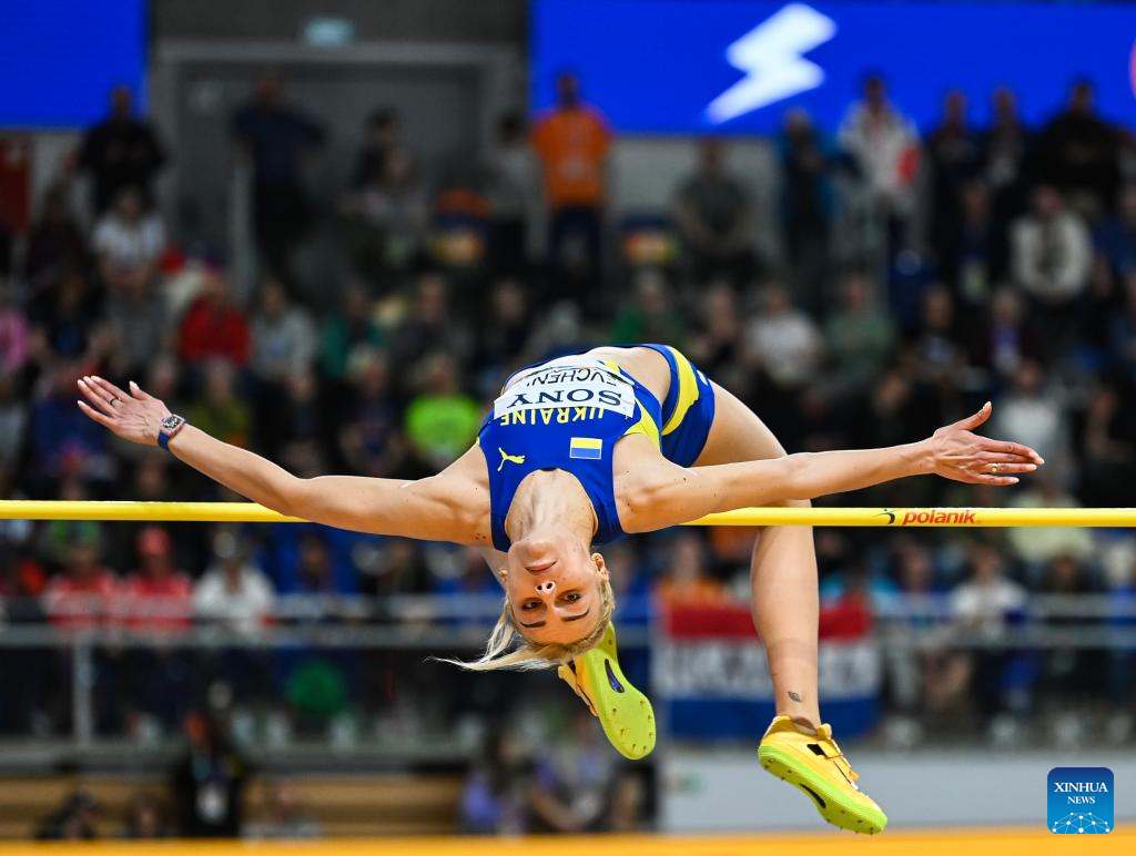 Yaroslava Mahuchikh of Ukraine competes during the women's high jump final at the 2026 World Athletics Indoor Championships in Torun, Poland, March 20, 2026. (Xinhua/Zhang Haofu)