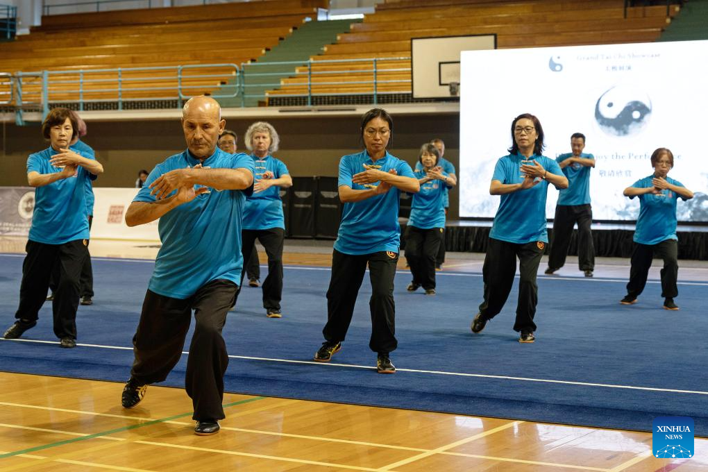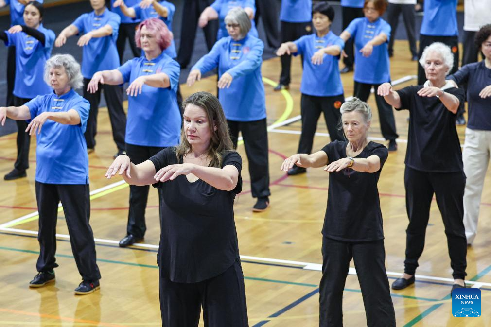 Enthusiasts perform Taijiquan, a kind of Chinese traditional martial arts, at the opening ceremony of the first New Zealand Taijiquan Open Championship in Auckland, New Zealand, on March 21, 2026. (Xinhua/Long Lei)