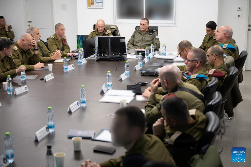 Israel's Chief of the General Staff Eyal Zamir meets with Northern Command leadership at the Northern Command headquarters in Israel, March 21, 2026. Israel's military chief has approved plans to expand the offensive in Lebanon and said the military is prepared for a "prolonged" operation. Eyal Zamir approved the advancement of targeted ground operations on Saturday following a meeting with Northern Command leadership, the military announced in a statement on Sunday. (Israel Defense Forces/Handout via Xinhua)